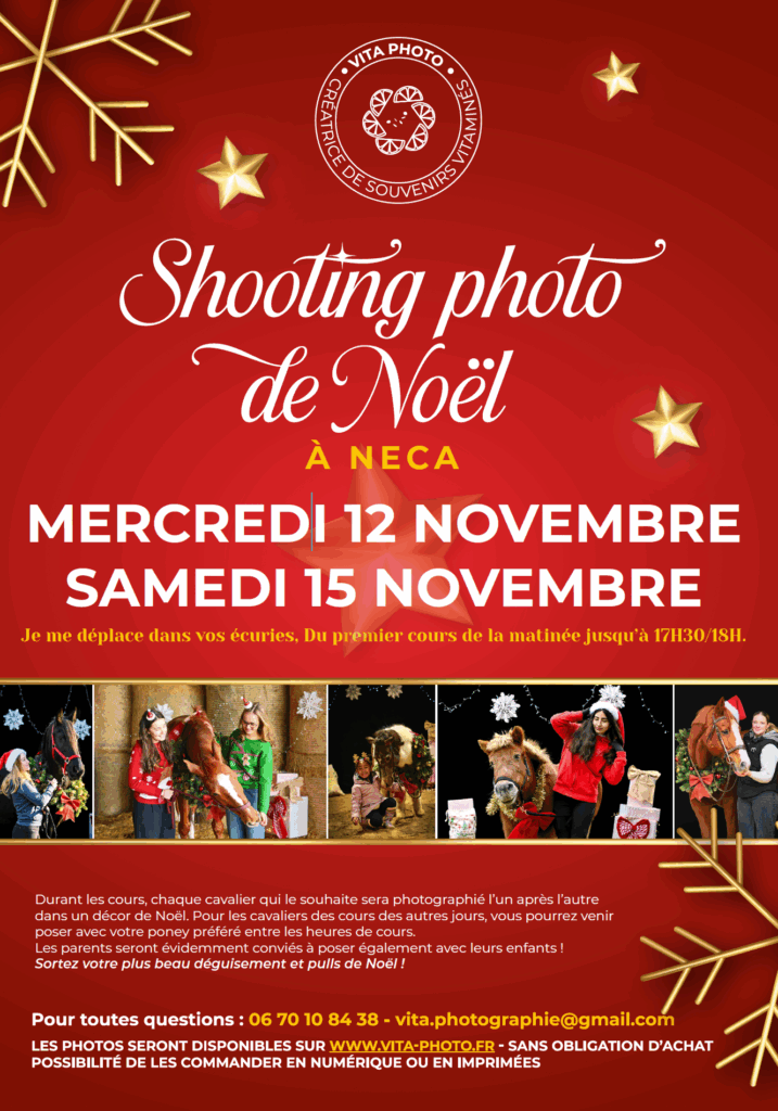 Je me déplace dans vos écuries, Du premier cours de la matinée jusqu’à 17 h 30/18 h. Sortez votre plus beau déguisement et pulls de Noël !